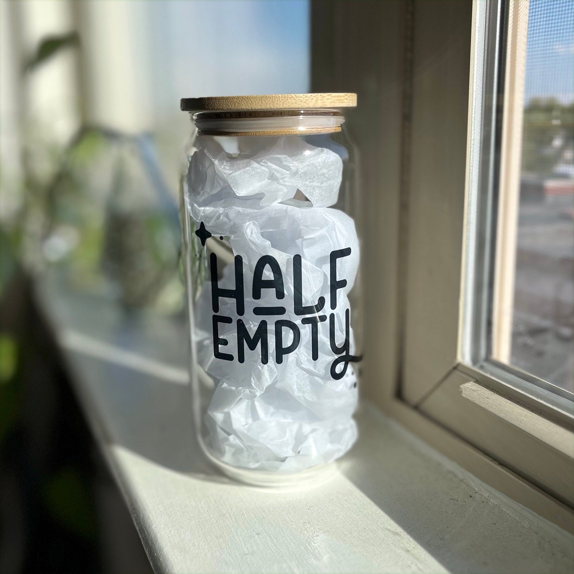 Half Empty Cup / 18 oz glass cup