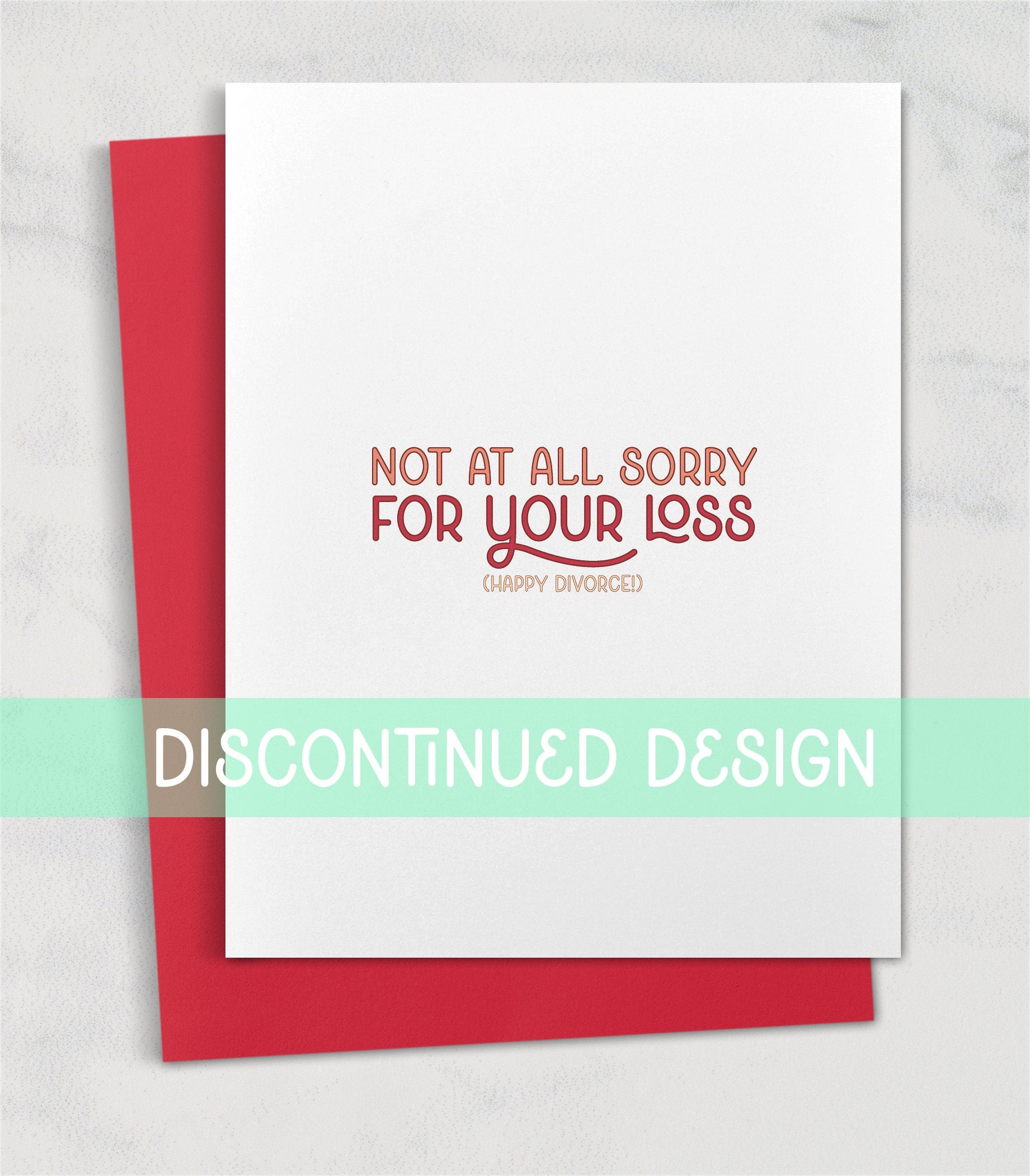 Not at all sorry for your loss. (Happy divorce!) / Celebrate divorce card for friend