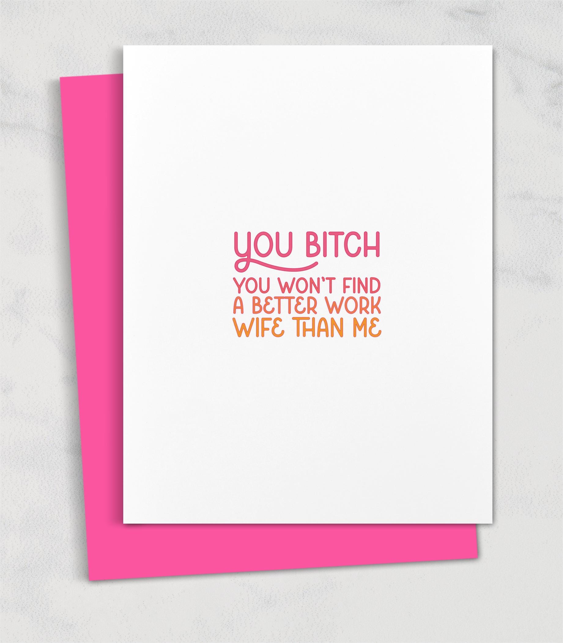 You bitch. You'll never find a better work wife than me. / Card for Bestie Work Wife for New Job